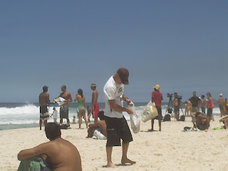 Marcelo Marinello, fundador da ONG, não pára nunca. É incansável no extermínio aos lixinhos da areia.