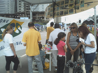 Na tenda da ONG SOS PRAIAS BRASIL as crianças tiveram a oportunidade de manusear brinquedos feitos a partir de materiais que iriam para o lixo e despertaram o interesse em produzir seus próprios bonecos. Esse trabalho foi criado e desenvolvido pela artista plástica Ana Velho no Projeto Reutilizarte e é difundido pela ONG SOS PRAIAS BRASIL por todos os lugares onde passa.