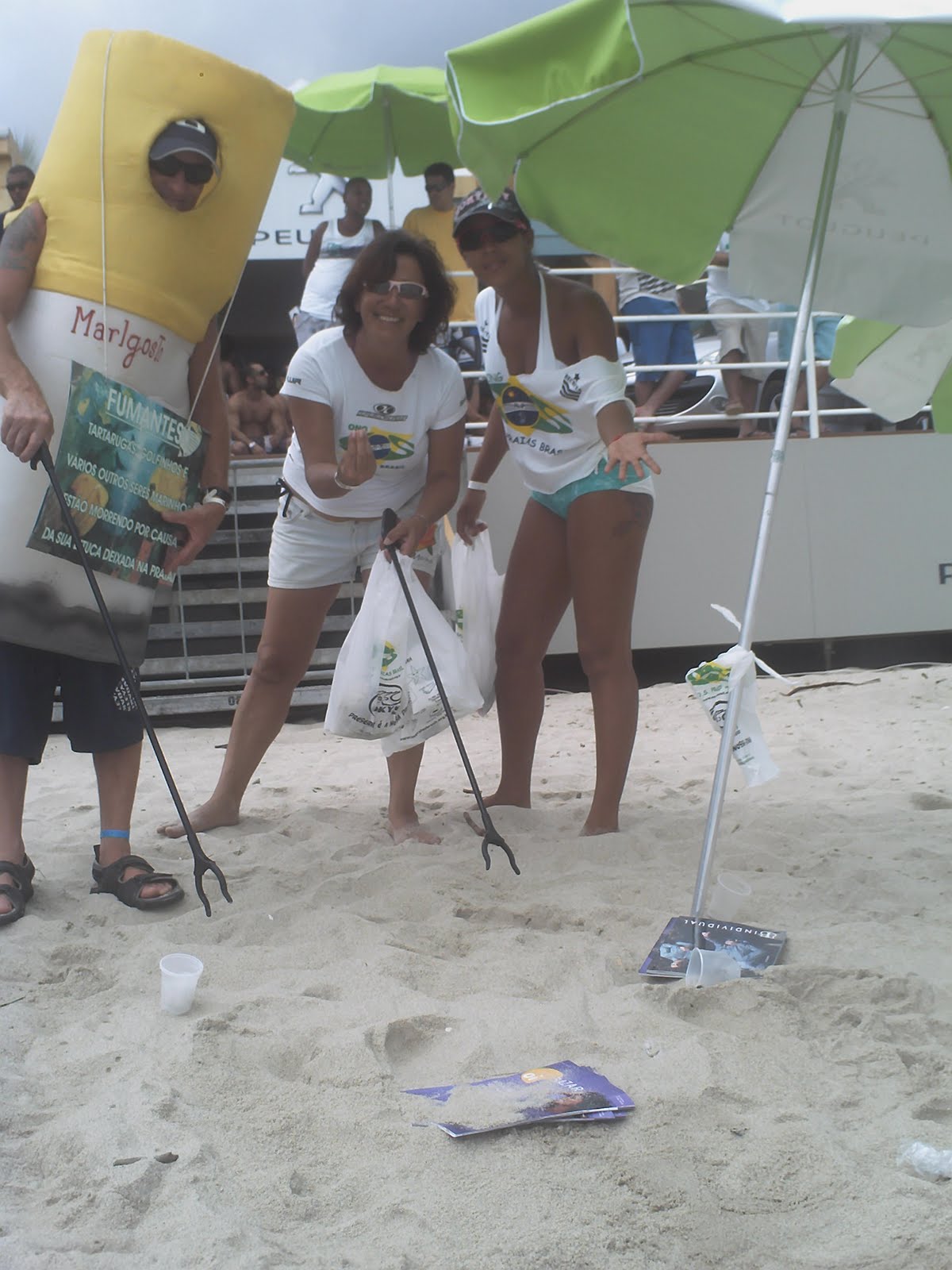 Ação de conscientização com o Homem-Bituca e coleta de micro-lixo