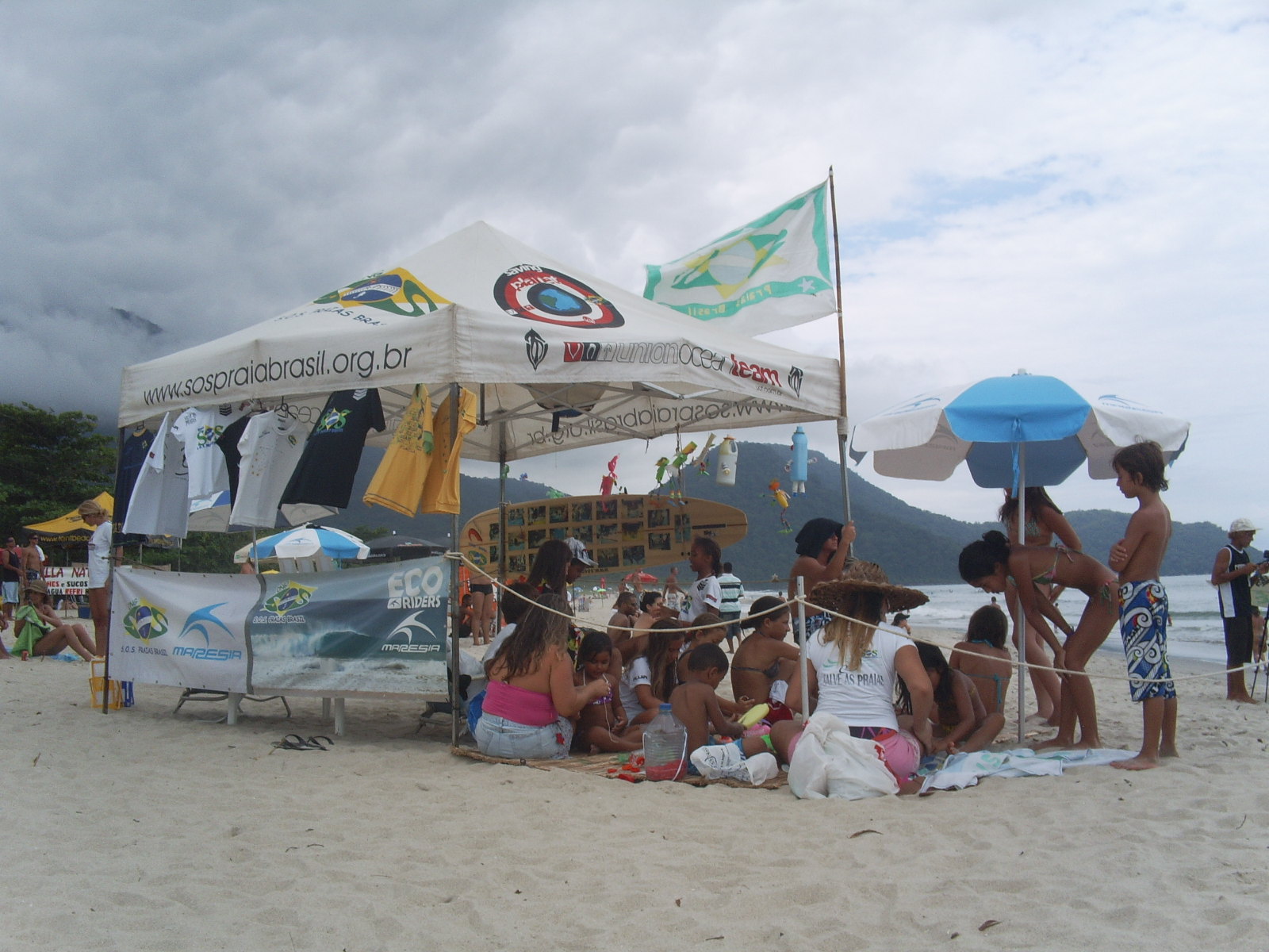 A ONG SOS Praias Brasil marcou presença na 2ª e 3ª etapa do Maresia Paulista Surf Pro 2010, de 2 a 5/12, em Itamambuca (Ubatuba/SP), realizando a gestão ambiental de todo o evento. Como não poderia deixar de ser, a ONG mobilizou o público para colaborar na preservação da praia. Nos quatro dias de campeonato, foram feitas várias atividades, especialmente com as crianças, que participaram de gincanas ecológicas, oficinas de reciclagem, palestras sobre o meio ambiente, e acompanharam o PinguimEco na conscientização dos banhistas para o problema do aquecimento global.
