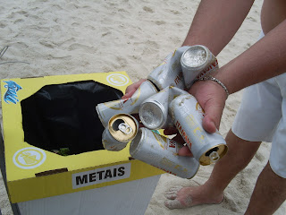 Haviam várias lixeiras de coleta seletiva na área do evento possibilitando o descarte correto dos materiais para envio à reciclagem.