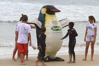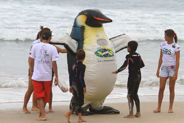 O Pinguim Eco como sempre, levando alegria para as crianças e lembrando sobre os males do Aquecimento Global.
