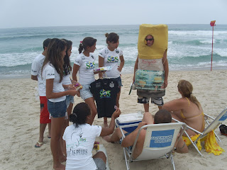 Com uma equipe de sete voluntários, coordenadas pela agente ambiental Patrícia Pari, apresentaram aos fumantes o cinzeiro portátil para facilitar o descarte correto do filtro de cigarro e também para explicar um pouco do trabalho da SOS PRAIAS BRASIL.