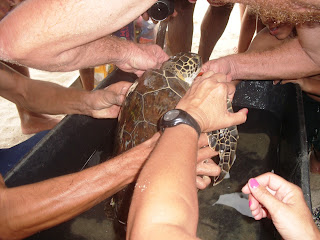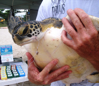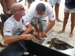 O Marcelo ajudou no resgate de uma tartaruga marinha que foi fisgada por acidente por um pescador. A tartaruga ficou descansando na tenda da ong SOS praias Brasil enquanto aguardávamos a chegada do Projeto Tamar. Felizmente ela agora passa bem.