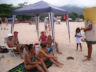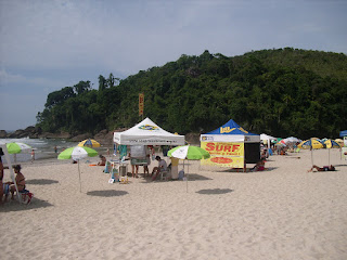 Neste Carnaval estivemos realizando nossas ações na Praia de Itamambuca e fizemos uma parceria com a Escola de Surf do Zecão. Nossa tenda com a Oficina de brinquedos e atividades lúdico-ambientais estava montada ao lado da tenda da Escola de Surf no canto direito da praia. Ficaremos até este final de semana em Itamambuca e então partiremos para outras praias.