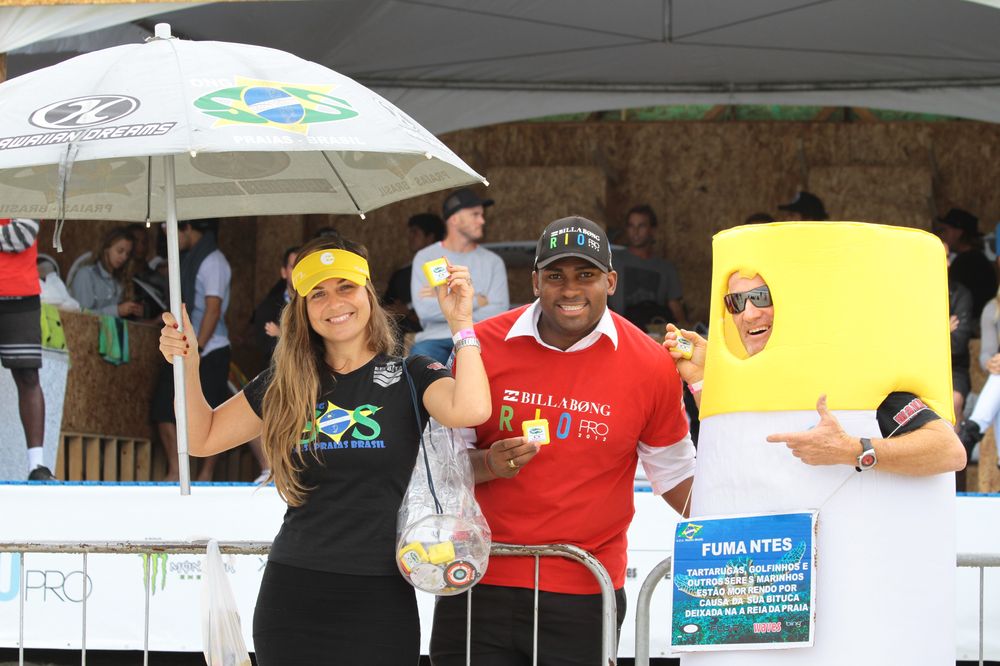 O Homem Bituca deixando sua mensagem de conscientização aos fumantes, circulou todos os dias nas areias de Saquarema juntamente com as três monitoras locais da cidade, Marina, Karine e Raíssa, contando com a colaboração do fotógrafo Bruno Mesquita.