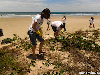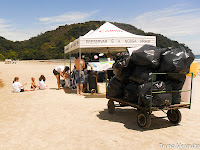 A praia onde foi realizado o mutirão foi a praia de Boracéia no canto de Bora Bora em São Sebastião. Compareceram 50 pessoas e o sol apareceu para ajudar.