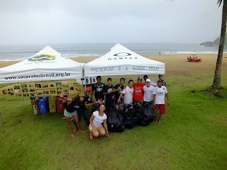 Foi realizado no último dia 12, um sábado que começou com sol, mas que terminou, mais uma vez nesse verão, com uma chuva persistente, o 1º Mutirão de Limpeza na praia Vermelha do Norte em Ubatuba, litoral norte de São Paulo. Com a ajuda da galera do canto esquerdo da praia do Renato Lual e amigos do bairro do Taquaral, a equipe da ONG SOS praias Brasil, formada por Marcelo, Helô, Diego Bello, Heitor Areias, Andreza e Jerry, retiraram 5 sacos de 100 litros de lixo.
