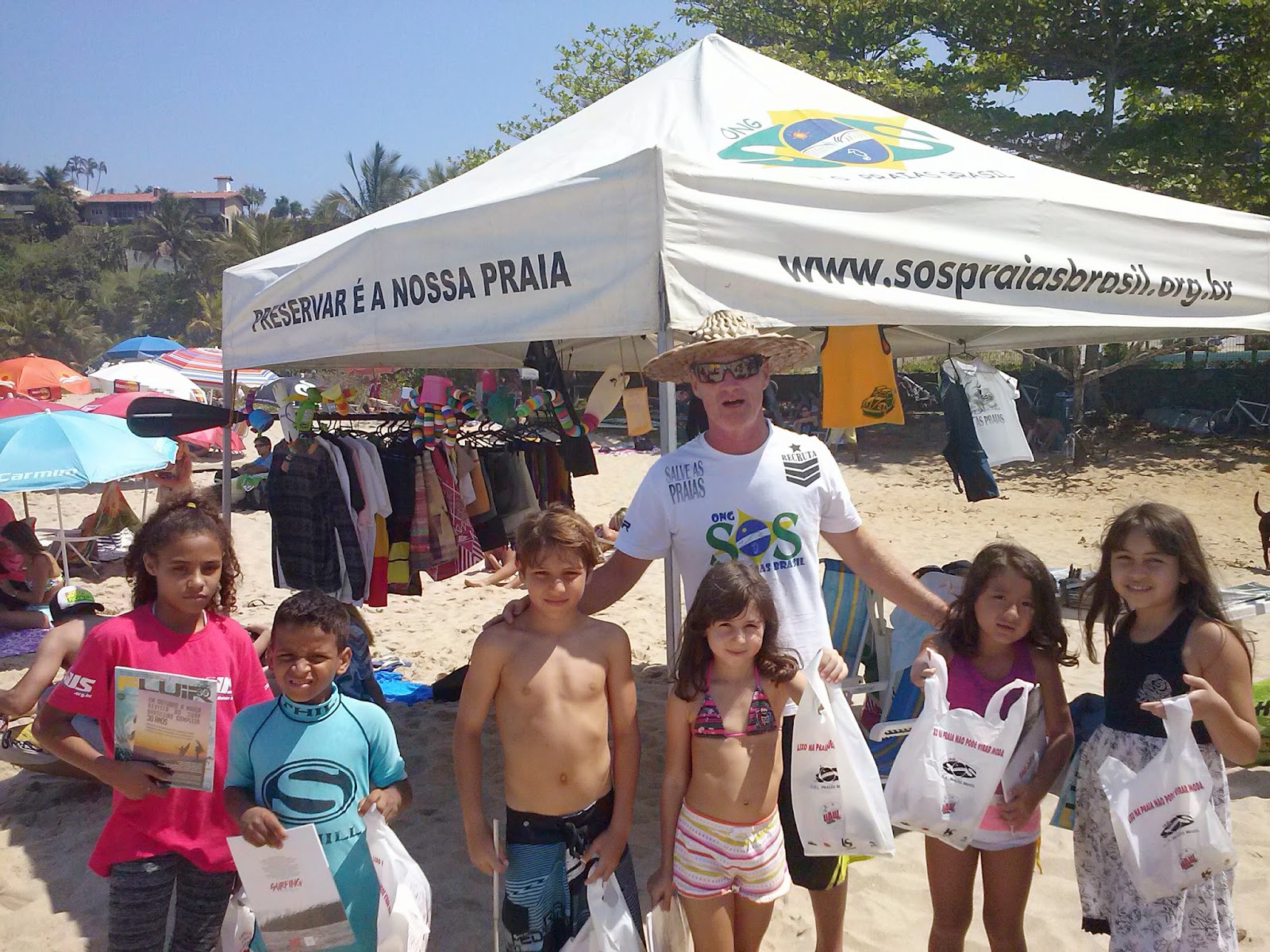 Com um sol maravilhoso, praia cheia e altas ondas, a ONG SOS PRAIAS BRASIL realizou, mais uma vez, seu trabalho de conscientização ambiental com o público presente nas areias da Vermelhinha.